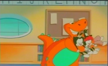 En un estudio de televisión dos chicos estaban en un lugar ambientado como un salón de escuela,luego dijeron la palabra mágica "inventar" y un muñeco naranja que estaba sobre una silla cobró vida y creció,más tarde ellos invitaron a los hermanos Warner al show,pero al ser abrazados muy fuerte por el se querían ir de allí pero no pudieron,además los chicos regresaron a sus casas y Yakko,Wakko y Dot se pusieron muy tristes.