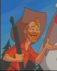Es el hombre que acompañó a Davy Omelette que era Kikiri Boo disfrazado solamente con un sombrero de mapache y vieron un grupo de diligencias destruidas en el camino de una aldea,al llegar el cazador le preguntó a la anciana que había sucedido y la mujer le respondió que habían sido atacados por un oso,luego el hombre le informó que estaba con él,el gran Davy Omelette,al escuchar eso la mujer gritó informando que había llegado el héroe,instantaneamente todas las personas que estaban escondidas dentro de una diligencia salieron,de pronto regresó el animal y cuando le gruñó a Kikiri Boo,el pollo gigante le sonrió,inmediatamente el oso se asustó y salió corriendo,al verlo eso todos comenzaron a festejar bailando pero en un descuido Kikiri Boo lanzó su sombrero de mapache y le cayó sobre la cabeza de la anciana,cuando todos se dieron cuenta de que el héroe era un pollo gigante la mujer llamó gritando al oso para que viniera a cazarlo.