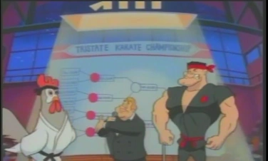 En un gimnasio se estaba disputando el campeonato interestatal de karate y en la final se enfrentaban Kwai Yan Kee,de la escuela del tigre y Mugu Hai Boo,de la escuela del dragón,al lado del lugar de la pelea uno de sus discípulos le dijo a su maestro que Mugu Hai Boo era un pollo gigante y el maestro al decir eso lo echó con un golpe de karate.