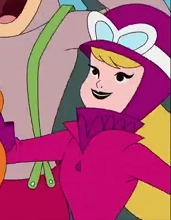 Es la famosa mujer piloto de Hanna Barbera de la serie animada de 1968 llamada "Los autos locos" y estaba junto con otros personajes de dibujos animados marchando a favor del derecho de que las caricaturas pudieran votar.