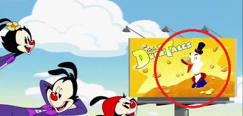 Es el famoso pato de Disney y su imagen estaba en un cartel en uno de los Estudios Warner y mientras que los hermanos Warner volaban por el aire luego de ser lanzados por el camión de la basura durante la canción de Reboot It! lo rompieron.