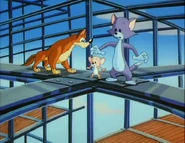 The cat that Mindy chases is Pussyfoot, best known for appearing in cartoons with Marc Anthony the bulldog.