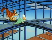 At one point‚ parodies of the characters of Popeye and Swee' Pea (here named "Green Bean") and Tom & Jerry appear at the construction site, most likely to emphasize the point that the whole "baby being chased on a construction site" plotline has been done to death in other cartoons.
