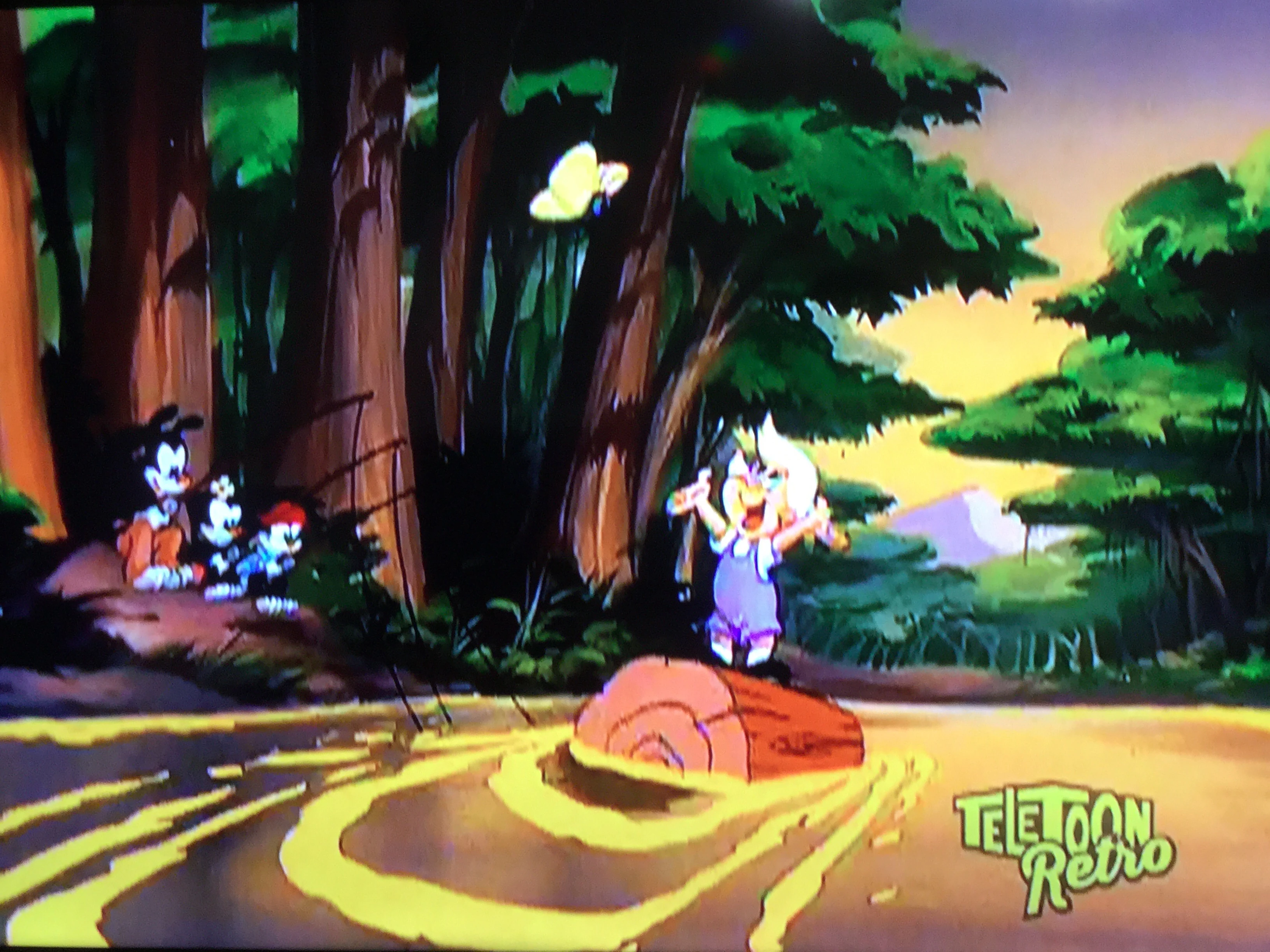 The Warners cameo in this cartoon, with fishing rods, when Buttons is watching Mindy float down the river.
