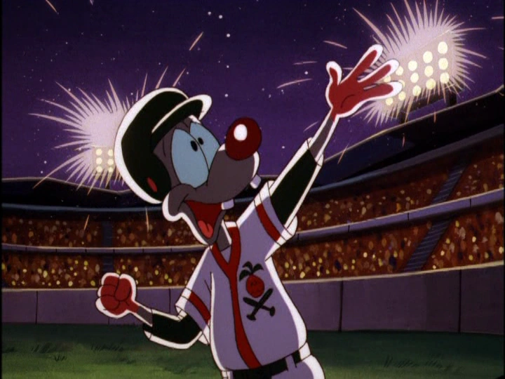 - The episode also parodies the 1984 baseball movie The Natural. Pinky gathered all of the splinters from the bench to make a baseball bat, carving the name "Thunderpoit" into the barrel (In the movie, Roy Hobbs makes his own baseball bat named "Wonderboy"). Pinky hitting the leather-repellent baseball which smashes into the stadium lights is a parody of the film's climactic moment.