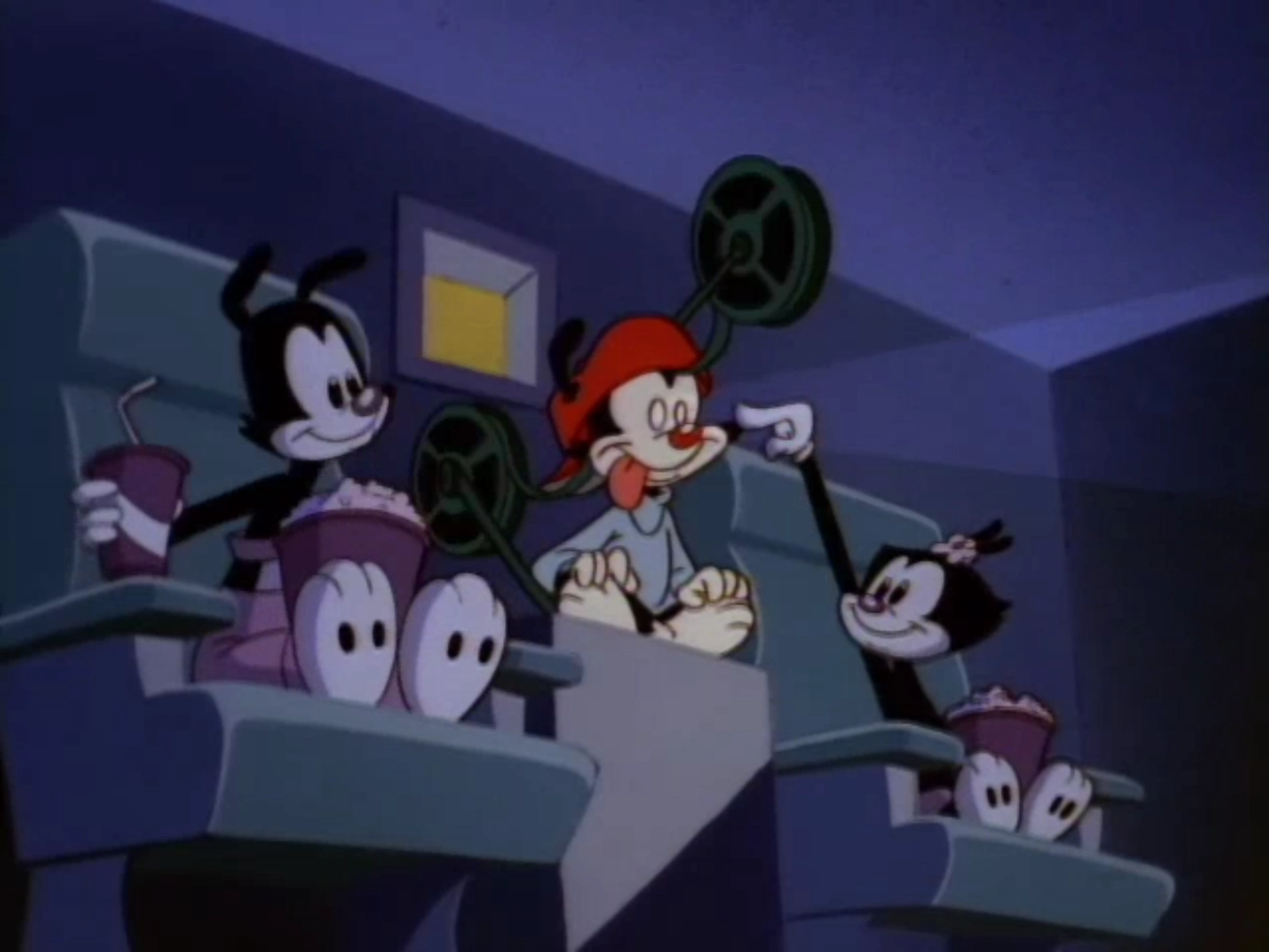 The Warners are about to watch the next cartoon in a movie theater.