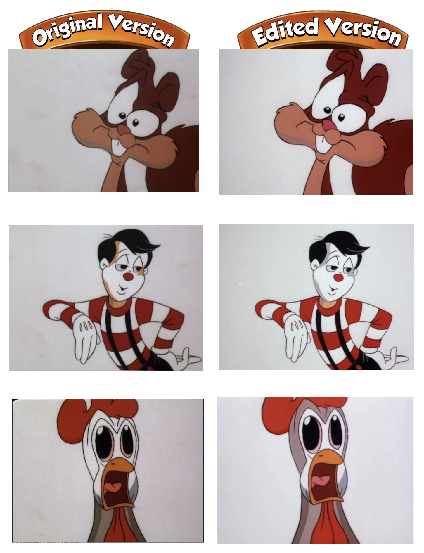 - When airing on Nickelodeon and Nicktoons, the following lines from "Bully for Skippy" were edited out: