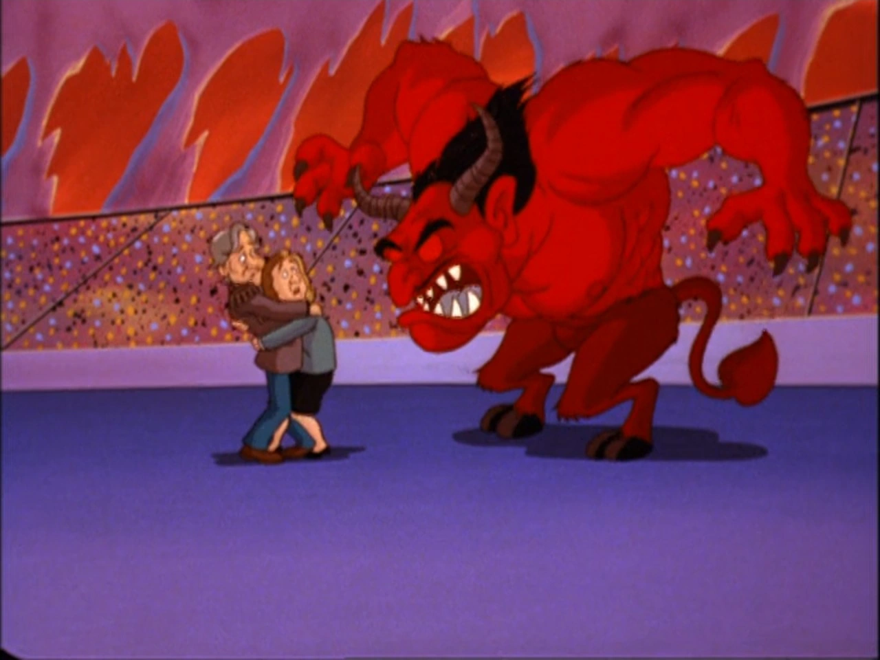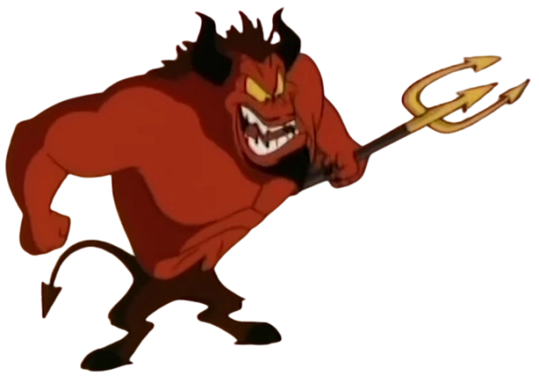 In A Pinky and the Brain Halloween, Satan appears as Mr. Itch. He attempts to manipulate Brain into selling his soul for world domination, but winds up with Pinky’s soul instead. Brain then ventures to Hell and takes on Mr. Itch in a match of rhythmic gymnastics to save Pinky. Mr. Itch loses Pinky’s soul after failing to fulfill one part of his contract (giving him a radish rose-whatchamawhozit). He then transforms into an appearance similar to his more traditional appearance and chases the two mice out of hell.