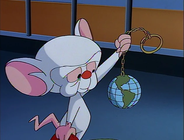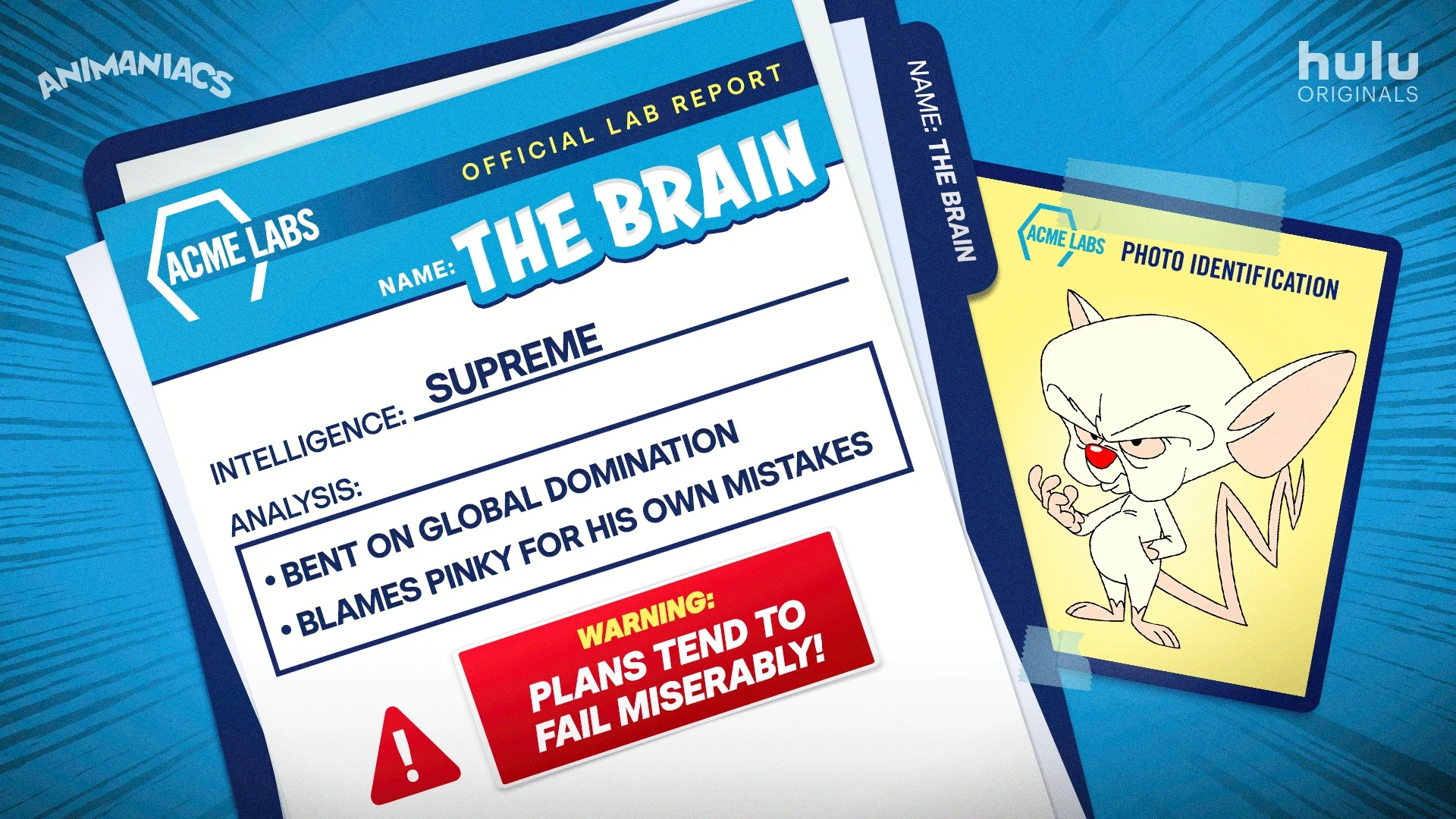 The Brain, or simply Brain, is an intelligent megalomaniac mouse and is one of the two major protagonists of the Pinky and The Brain segments as well as it's spin-off shows. He is a mouse that harbors a long-lasting desire to take over the world, for which he makes nightly attempts at doing. His assistant, Pinky, is more dim-witted and excitable, which often irritates Brain, though he is secretly fond of him.
