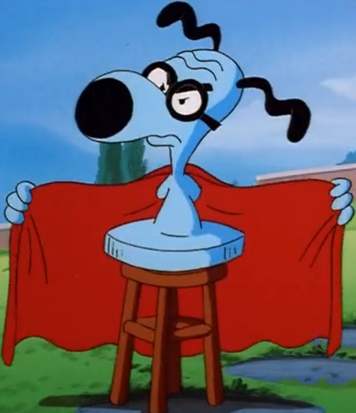 In the 1960's, his show was the third to feature guest appearances by the Warners. He was about to use his magic feather to fully regain his strength, however The Warners appeared and Yakko told him to use his wit, taking the feather and Thunderdog ended up being flattened by a weight he was holding. His legs never un-flattened and he was forced to walk with a stool ever since.